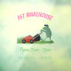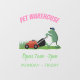 A funny green frog mowing the lawn in silly cartoon style.