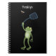 This funny green frog is catching lunch with a flyswatter. Drawn in silly cartoon illustration style.