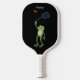 Funny green frog swatting fly cartoon pickleball paddle