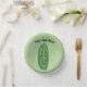 Funny Green Pickle With Surprised Face on Green Paper Plate