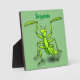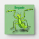Funny green praying mantis cartoon illustration plaque