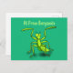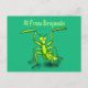 Funny green praying mantis cartoon illustration postcard