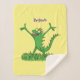 Funny green smiling animated iguana lizard sherpa blanket