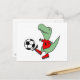 Funny Green T-rex Dinosaur Playing Soccer Postcard