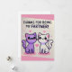 Add a touch of humour and a smile to your gift with this adorable and funny greeting card. Featuring a charming cartoon design of two cute cats and a playful phrase that reads, "Thanks for Being My Fartner," this card is ideal for various occasions.
