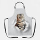 Funny Grey Cat Popping thru Torn Paper Illusion Apron