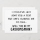 I Could've Just Sent You a Text but She's Making Me Do This... Will You Be My Groomsman? funny Groomsman Proposal Card with Simple Black and white Text. This Card Features a Customisable Name and Text on Front and the Back side. Write Your Personal Message on the Back Side. Click on the Personalise Button to Add Your Text or Message.