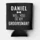 Funny Groomsman Wedding Bro Proposal Black Beer Can Cooler