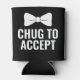 Each line of text on this can cooler template is editable within zazzle's easy to use personalisation tool. the front includes an upper text box for you to personalise with each name. It followed by a tiny bow tie silouette, and then th woods "WILL YOU BE MY GROOMSMAN?" ("GROOMSMAN" is designated its own box, so you can easily change it to BEST MAN/USHER/OFFICIANT, etc) . The back (also editable) includes a large bow tie silouette,followed by the instructions: "CHUG TO ACCEPT." Surprise your bridal party with a gift they will use for a lifetime.