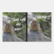 Funny angry looking ground squirrel with internet meme slogan "Get off my lawn" on rectangle stickers.