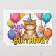 A hilarious birthday card featuring a grumpy cartoon cat wearing a party hat, surrounded by balloons and a birthday cake. Bold comic style with bright colours and a white background, perfect for anyone with a sense of humour. Ideal for sending witty birthday wishes to friends, family, or coworkers. High-quality, ready-to-print design, suitable for Standard 5x7" Zazzle greeting cards.