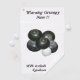 Pictured are black lawn bowls and jack with a funny grumpy man with irritable bowls syndrome message.