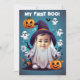 Newborn baby announcement and baby first halloween party invitation. Put your own headshot photo into the ghost-themed design for a fun and spooky effect. Easily add a high-resolution image. Make sure that the face is visible. A clear, front-facing view with a white background works best. Choose a funny facial expression to add some whimsy to the transformation. Position the photo in the designated space on the card. Depending on your desired results, you may need to rotate, flip, resize or crop your picture to fit perfectly. Get creative! You can also apply photo filters to give it an extra magical touch. Once your photo is in place, your baby will instantly become a part of the Halloween magic. It's a perfect way to share some spooky fun with friends and family. Enjoy the transformation and have a happy Halloween! You can remove back information, edit text ...Surprise everyone and create a beautiful memory for your baby.