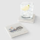 The coasters are gorgeous, a quality feel and heavy weight. They look like a precious archeological find. A rustic stone juxtaposed with a modern floral black and white print. I like the way the print goes slightly imperfect on the cut stone edges giving them a kind-of natural beauty.