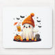 Funny Halloween Cute Ghost Drinking Ice Coffee Wom Mouse Pad