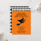 Creative Halloween invites featuring a rhyme and flying witch on a broomstick.