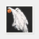 Creative Halloween napkins for your party or event featuring funny ghost carrying a trick-or-treat pumpkin.