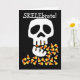 SKELEbrate Halloween with this funny looking skull chomping down on some sugary candy corn. White skull, candy corn, and white lettering on a black background. Customise the interior message as you like before checkout. Art, image, and verse copyright © Shoaff Ballanger Studios, 2021.