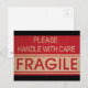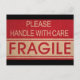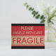 Funny handle with care, fragile sign postcard