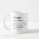 Create your own one-of-a-kind personalised coffee mug with the definition of hangry. Modern dictionary style hangry definition with custom name, black typography and clean and simple design. A personalised gift idea for that one person you always carry a granola bar for. A unique and funny gift for Birthdays or Christmas, really any occasion. Enjoy the look on the face when your hangry friend unwraps it.