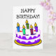Happy birthday card with funny cake and candles.