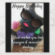 Designed with a personal photo of a family black cat. She loves to have her picture taken and as you can see she also loves to be the queen of the house. In this photo chosen she has sunglasses and a flower necklace to show off her glam. The funny phrase is "Happy Birthday. Wine makes you look younger and marvellous darling." Surprise a friend or family member on her birthday with these hilarious wine labels on her favourite wine bottle! Customise words if you wish.