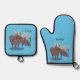 Funny happy moose cartoon illustration oven mitt & pot holder set