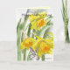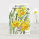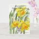 A cartoon bunny rabbit cutely peaking out from some bright yellow watercolor daffodils- the perfect combo card to wish mum a Happy Mothers Day.