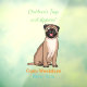 A funny happy pug dog drawn in cartoon illustration style.