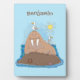 Funny happy walrus cartoon illustration plaque