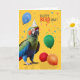 The Harlequin Macaw is a beautiful parrot that came to be by pairing a Blue and Gold Macaw with a Green-winged, creating a gorgeous and color parrot; and this one sends happy birthday wishes.