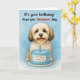 A sweet Havanese pup beams behind a frosted blue birthday cake, complete with a single candle and a customisable age and personalise the recipient’s name. The front text says, “It’s your birthday! Hope you ‘Havanese’ day,” adding a fun dog-themed pun that’s both clever and warm. This card is ideal for sending cheerful birthday wishes to a friend who loves dogs. The editable age makes it perfect for customising birthdays at any stage—from young to young at heart!
