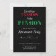 This humourous invitation says, goodbye tension hello pension. With a dollar sign as the letter, 's', it's targeted to the US market. Your guests will love this simple invitation with its bold typography. On a black background, the white text will pop.