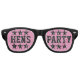 Fun hens night party shades funny gag sunglasses. Humourous team bride bachelorette party shades with stars. Also customisable / available for groom and groomsmen organising a bachelor party. Funny props for friends of soon to be married women and men. Cool wedding game accessory idea for bride to be and bride's crew. Make one for bridesmaids, maid of honour, matron of honour, flower girl, mother of the bride etc. Celebrate Girls night out / hens night / stag night / ladies weekend gathering in style. Cool sun glasses with custom personalised text. Customisable frame colour and background colour. Fun gag party props for brides entourage at engagement, bridal shower and marriage celebrations. Wayfarer and Aviator shape. Pink and black colours.