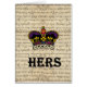 Fun funny "hers" text with a purple crown illustration on a vintage paper handwritten background.