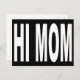 Funny Hi Mum postcard to send your mother a surprise greeting. Large white letters on black, or change the background colour if you like.