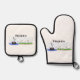 Funny hippo birdie two ewes oven mitt & pot holder set