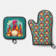 Funny Hipster Rooster Retro Pop Art Illustration Oven Mitt & Pot Holder Set