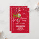 Funny HO HO HO Retro Christmas Party Invitation, features a retro handwritten typography "HO HO HO" with Christmas cartoon characters: Santa claus, snow men & teddy bear, isolated on red background with white snowflakes.