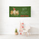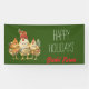 Our delightful holiday banner features a trio of chickens with holiday light string, along with customisable text on green background.