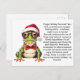 Hop through the holidays with ribbiting tips from this festive frog friend! Packed with amphibian humour and lily pad wisdom, each message is sure to make you croak with laughter. Whether you're feeling a bit froggy or just need a dose of festive fun, this postcard is bound to add a splash of swampy charm to your day. Embrace the holiday spirit with the guidance of this witty frog and share a giggle today!