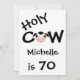 Personalised Humourous Holy Cow 70th Birthday Party Invitation in Black and White for Men and Women.