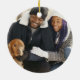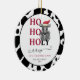 Funny Holy Cow Cowhide Pattern Christmas Ceramic Ornament. A cute farm-themed design featuring a cow wearing a jolly Santa hat and saying "ho ho holy cow it's Christmas again" on a black and white cowhide pattern. Add your own festive photo to the back of the ornament and make it uniquely yours. It also makes a great gift and keepsake for your family and friends.