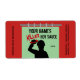 These customisable funny hot sauce labels have a silhouette of a person holding a red chile pepper like a knife in front of a shower curtain. It says Your Name's Killer Hot Sauce.
