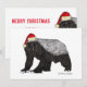 Time for a badass Christmas with this Funny nasty Santa Claus xmas honey badger. Festive honey badger wearing a cute Santa hat illustration. Better make sure you’re not in the naughty category or badass Santa will be after you. Crazy honey badger wild animal Father Christmas irony illustration by artist Catherine Sweetman