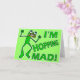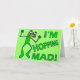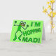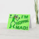 This cute green frog is angry. The green text says, "I'm hopping mad!" If you like reptile / amphibian cartoons and funny animal puns, this is the design for you.