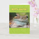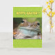 This frog looks bored, but he's still wishing you "a hoppy Easter". He hopes your Easter is "ribbiting". Instead of the usual Easter bunny card, why not give a "hoppy frog" card? People who love puns will croak with laughter.
