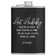 Show him fun humour with this Funny Hubby Husband Romantic Poem Personalised Flask. It is designed with a fun romantic poem "hot hubby you're so sexy and you're so fine I'm so glad you're mine all mine" in white typography with trendy hand lettered script. The background is customisable black. Husband's name is across lower front centre. Perfect for your his birthday or special occasion! Available in different colours and styles. Click the "personalise" option and enter name.