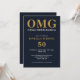 Funny Humourous 50th Birthday OMG Navy Blue Gold Invitation