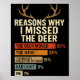 Funny Hunter Reasons Why I Missed The Deer Hunting Poster